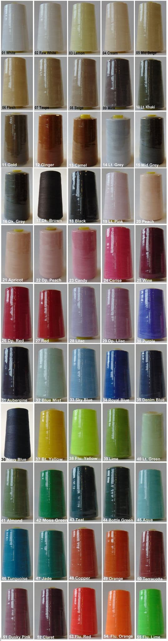 0 C0003 75, Spun Polyester Overlocking Thread - 5000yrd cones - Full Colour Range (1)
