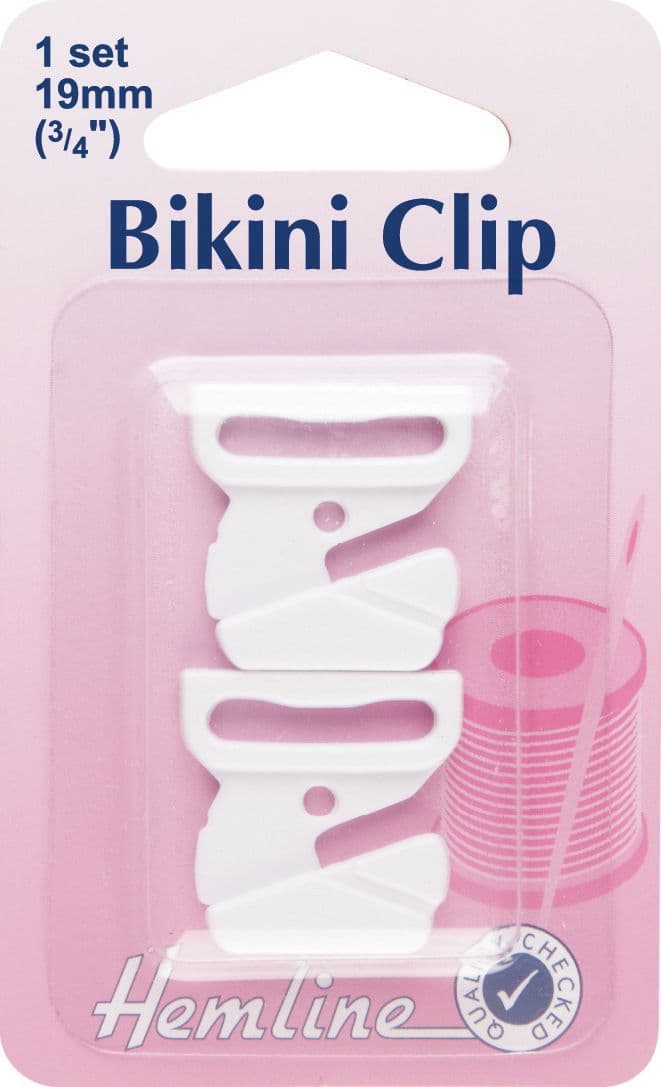 Secure clip for fastening bikini bra backs. White, 19mm/0.75in. 1 set.