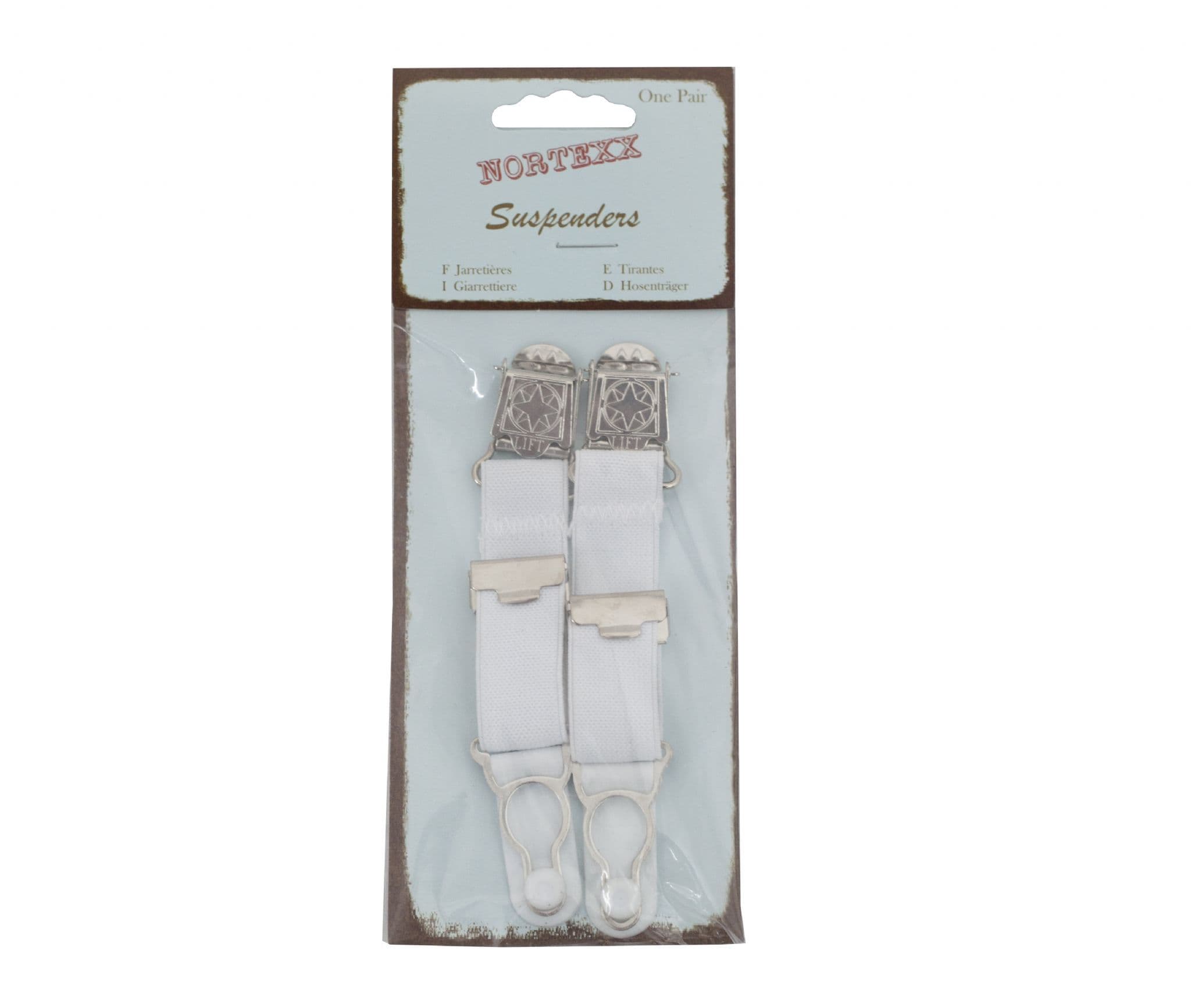 2 clip-on suspenders. Clips onto lingerie. Adjustable Length. Quick and easy to use. 1 pair per pack. 5pks.